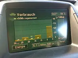 Dadurch lässt sich der Gesamtwirkungsgrad des Fahrzeuges auf über 38 % steigern.[5] Zur Anzeige des Betriebszustands kann ein Econometer dienen.