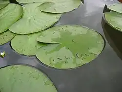 - Schwimmblätter zeigen meist einen besonderen Aufbau: Sie besitzen ein ausgeprägtes Aerenchym und sind dadurch schwimmfähig, die Spaltöffnungen sind auf die luftexponierte Oberseite beschränkt; Die Blattoberfläche ist durch eine Wachsschicht wasserabweisend, teilweise auch schmutzabweisend (Lotoseffekt); sie verfügen über drüsenartige Strukturen, mit denen sie Wasser und Ionen aufnehmen können (Hydropoten); die Blattstiele sind stark verlängert, ansonsten aber normal gebaut, sie verfügen auch über Xylem, mit dem sie das Wasser von den Wurzeln zu den transpirierenden Blättern transportieren. Der Wassertransport erfolgt jedoch durch Wurzeldruck, nicht durch Transpirationssog. In Stillgewässern sind die Schwimmblätter meist groß und rund und entspringen einer Rosette. Victoria (Gattung) bildet Blätter mit bis zu zwei Meter Durchmesser.