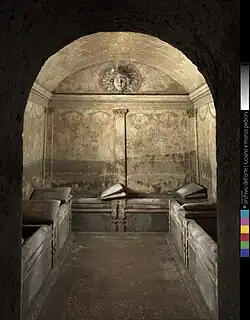 - ↑ A. G. Potrandolfo, G. Vecchio: Gli ipogei funerari. In: G. Macchiaroli (Hrsg.): Napoli antica. Neapel 1985.