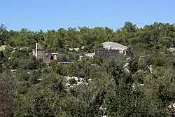 Im östlichen Teil steht eine dreischiffige Basilika von 25 × 30 Metern mit Narthex im Westen. Ihre Apsis geht nach Osten, daneben liegen zwei Pastophorien, die über einen Gurtbogen in zwei Räume geteilt sind und ebenfalls über eine kleine Apsis verfügen. Die Schiffe sind durch von jeweils vier Säulen gestützte Arkaden getrennt. Im Süden schließt sich an die Kirche eine große gedeckte Zisterne an. In ihrer Umgebung liegen nochmals Sarkophage, von denen einer mit Girlanden, Blättern und Tauben geschmückt ist.