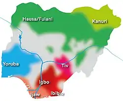| Jamhuriyar Taraiyar Nijeriya (Haussa) Njíkötá Óchíchìiwù Naíjíríà (Igbo) Àpapọ̀ Olómìnira ilẹ̀ Nàìjíríà (Yoruba) Federal Republic of Nigeria (englisch) République fédérale du Nigeria (französisch) | |||||