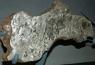 - ↑ K. R. Kelly, J. W. Larimer: Chemical fractionation in meteorites – VIII: Iron meteorites and the cosmochemical history of the metal phase. In: Geochimica Cosmochimica Acta. Band 41, 1977, S. 93–111.