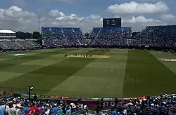 Im Juli 2023 setzte der International Cricket Council vier Städte in den Vereinigten Staaten auf die Kurzliste: Lauderhill (Central Broward Regional Park), Morrisville (Church Street Park), Dallas (Grand Prairie Stadium) und East Meadow (Van Cortlandt Park); woraus sich zehn Spielorte in den West Indies und den Vereinigten Staaten ergaben.[25] Einwohner der Bronx-Gemeinschaft protestierten gegen das geplante Cricketstadion in Van Cortlandt Park und verwiesen darauf, dass dies den öffentlichen Zugang zum Park für längere Zeit einschränke, äußerten Bedenken bezüglich der Umweltauswirkungen und bezweifelten die wirtschaftliche Rentabilität, woraufhin der ICC beschloss, anstelle dessen ein Cricketstadion in Eisenhower Park zu errichten.[26][27]