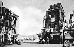Zur Linken neben einem Häuschen das Haus der Carmela mit Balkon und Tür, zu der einige Stufen führen. Weiter nach hinten, aber mehr der Bühne zugekehrt, die Werkstätte des Schmiedes Gennaro. Ein Amboss vor dem Eingang. Rechts im Vordergrund das verfallene Häuschen des Schreibers Biaso. Mehr rückwärts neben einem Torbogen der Laden eines Makkaroni-, Käse- und Obsthändlers. Dann die Osteria mit Tischen vor der Tür. […] Es ist Madonnentag, ein herrlich strahlender Nachmittag. Die Piazzetta ist erfüllt von einer lärmenden Menschenmenge, die sich des schönen Tages freut und ihn mit jener Festesfreude begeht, die halb karnevalsmäßig, halb religiös und für Süd-Italien charakteristisch ist […]