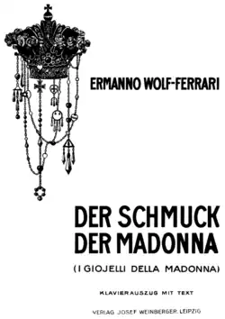 - ↑ a b c d e f g h i j k l Thomas Weitzel: Der Schmuck der Madonna. In: Pipers Enzyklopädie des Musiktheaters. Band 6: Werke. Spontini – Zumsteeg. Piper, München/Zürich 1997, ISBN 3-492-02421-1, S. 758–760.