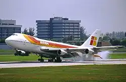Iberia Líneas Aéreas de España S.A. Operadora,[3] meist kurz Iberia, ist die größte spanische Fluggesellschaft mit Sitz in Madrid und Drehkreuz auf dem Flughafen Madrid-Barajas. Sie ist Teil des Luftfahrtkonzerns International Airlines Group (IAG) und Mitglied der Oneworld Alliance.