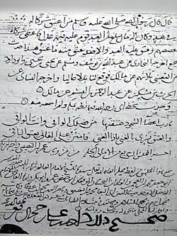 - ist ein kleines Heft in der Handschriftensammlung von Alexandria, welches Hadithe enthält, die Ibn Hadschar al-ʿAsqalānī im Jahre 1432 in der Hauptmoschee von Aleppo diktiert und erörtert hatte. Auf dem letzten Blatt bestätigt Ibn Hadschar eigenhändig die Richtigkeit der Überlieferungsrechte. Solche Diktate waren wesentlicher Bestandteil des islamischen Lehrbetriebs seit dem frühen 9. Jahrhundert.[9]