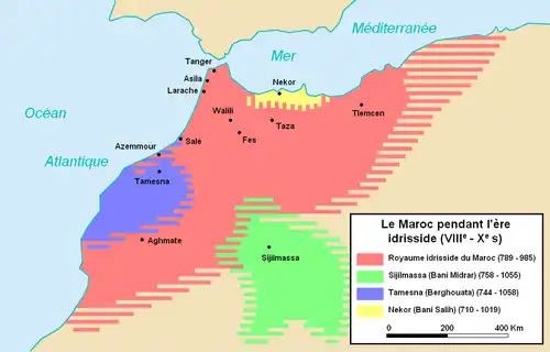 Idris II. (791–828) baute das schon von seinem Vater angelegte Militärlager Fès zur Residenz und zum neuen Reichszentrum aus. Durch die Ansiedlung von Flüchtlingen aus Kairuan und al-Andalus (818) entwickelte sich die Stadt schnell zu einem bedeutenden Zentrum der Islamisierung und Arabisierung Nordafrikas. Auch wurde das Idrisiden-Reich durch Feldzüge in den Hohen Atlas und gegen Tlemcen ausgeweitet, sodass die Idrisiden – vor den Fürstentümern der Bargawata, der Salihiden sowie der Miknasa und Magrawa von Sidschilmasa – zur bedeutendsten Macht der Region aufstiegen.