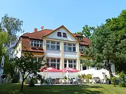 Das einem Gutshaus ähnliche Gebäude wurde 1924 im Auftrag der Familie Grünberg aus Swinemünde im Stil der Bäderarchitektur errichtet.[2][3] Der Wolgastsee war seit dem 19. Jahrhundert ein beliebtes Ausflugsziel für die Einwohner und Badegäste der Seebäder Swinemünde, Ahlbeck, Heringsdorf und Bansin.