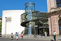 Berlin. Auch bei dem Ausstellungsbau des Deutschen Historischen Museums (DHM) in Berlin bestand die Aufgabe darin, ein prächtiges, altes Gebäude – das barocke Zeughaus, im historischen Stadtzentrum gelegen – unaufdringlich durch zeitgemäße Architektur zu ergänzen. Im August 1998 begannen die Bauarbeiten, im Mai 2003 wurde die erste Ausstellung im Neubau eröffnet. Auf einem schwierigen Restgrundstück errichtete Pei einen Ausstellungstrakt mit nahezu fensterlosen Wänden, in dem die wechselnden Sonderausstellungen des Museums stattfinden. Zum Altbau hin schließt sich ein haushohes, nach außen vollständig verglastes Foyer an, das auf mehreren Ebenen abwechslungsreich mit dem eigentlichen Ausstellungsbau verschränkt ist. Mit dem Zeughaus ist es durch einen Tunnelgang verbunden, kann aber auch direkt von der Straße her betreten werden. Die filigrane Glas- und Stahlkonstruktion erlaubt wechselnde Ausblicke auf die Nordfassade des Zeughauses und die nähere Umgebung. Nach innen verursacht sie eindrucksvolle Licht- und Schatteneffekte. Lichtgestaltung durch großflächige Glaskonstruktionen ist ein programmatisches Element zahlreicher Bauten, die Pei entworfen hat. In seinen eigenen Worten: „It is not an exaggeration to say that light is the key to architecture“ (Es ist nicht übertrieben zu sagen, dass Licht der Schlüssel zur Architektur ist).[7]