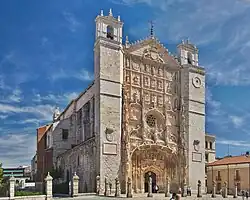 Der Konvent des hl. Paulus wurde 1276 durch Violante von Aragón gegründet, Tochter der Königin Violante von Ungarn. Zugleich entstand eine Kollegiatkirche. Zu dieser Zeit war Valladolid die Hauptstand von Kastilien und León bis 1601. Zwischen 1445 und 1468 hat der Dominikaner und spätere Kardinal Juan de Torquemada, Onkel des Generalinquisitors Tomás de Torquemada, der im Kloster zur Schule gegangen war, die Mittel für einen neuen und größeren Kirchenbau gegeben. Seine Nachfolger setzten ihn bis zu seiner Fertigstellung 1616 fort, darunter der Beichtvater Kaiser Karls V., Kardinal García Loaysa. Der Mittelteil der Fassade wurde von Simon von Köln († 1511) mitgestaltet und gilt als Meisterwerk des spätgotischen Isabellinischen Stils.