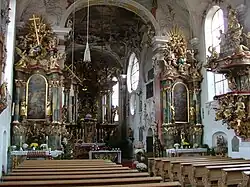 - ↑ Türkheims Kunstschreinerwerkstätten versorgten rund ein Jahrhundert lang weite Gebiete Schwabens mit Kircheneinrichtungen: Habel, S. 19.