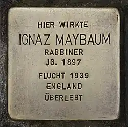 Am 21. März 2011 wurde in Frankfurt (Oder) ein Stolperstein für den Rabbiner Ignaz Maybaum verlegt. Die Inschrift lautet: