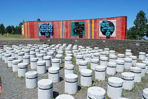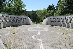 Vor dem Denkmal befindet sich ein Amphitheater, bestehend aus einem runden Platz diversen kleinen Betonsitzen, eingefasst von Mauern mit keramischen Kunstwerken. Dieser Platz wurde von dem jugoslawischen Künstler Petar Mazev entworfen.