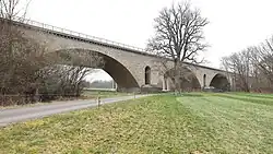 Es handelt sich beim Teilbauwerk 2 um eine steinerne Bogenbrücke aus dem Jahre 1939 und beim Teilbauwerk 1 um eine Balkenbrücke von 1999 aus Spannbeton.[1] Die alte Brücke war Teil der Strecke 80 der Reichsautobahn.