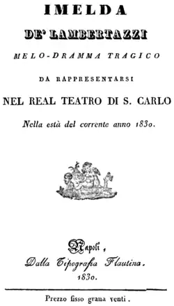 ![]() Titelblatt des Librettos, Neapel 1830 | |