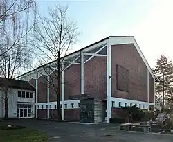 In der Paul-Humburg-Str. wurde 1957 ein Gemeindehaus und 1959 ein Pfarrhaus gebaut. Die Kirche wurde 1962/63 durch den Architekten Gottfried Tucholski als saalartiger Stahlbeton-Skelettbau mit Sichtziegelausfachung und südseitigem Emporenanbau errichtet. Das Kirchenschiff ist über 35 Meter lang und umfasst 450 feste Sitzplätze. Kanzel, Altar, Taufstein und Fenster wurden von dem einheimischen Maler und Bildhauer Herbert Schuffenhauer gestaltet.