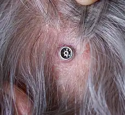 Implantierte Titanschraube hinter dem Ohr