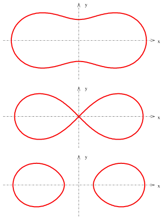 beschreiben. Für ergibt sich die Kurve durch den Ursprung und hat einen Doppelpunkt. Die Kurven sehen wie Cassinische Kurven aus, sind aber keine.
