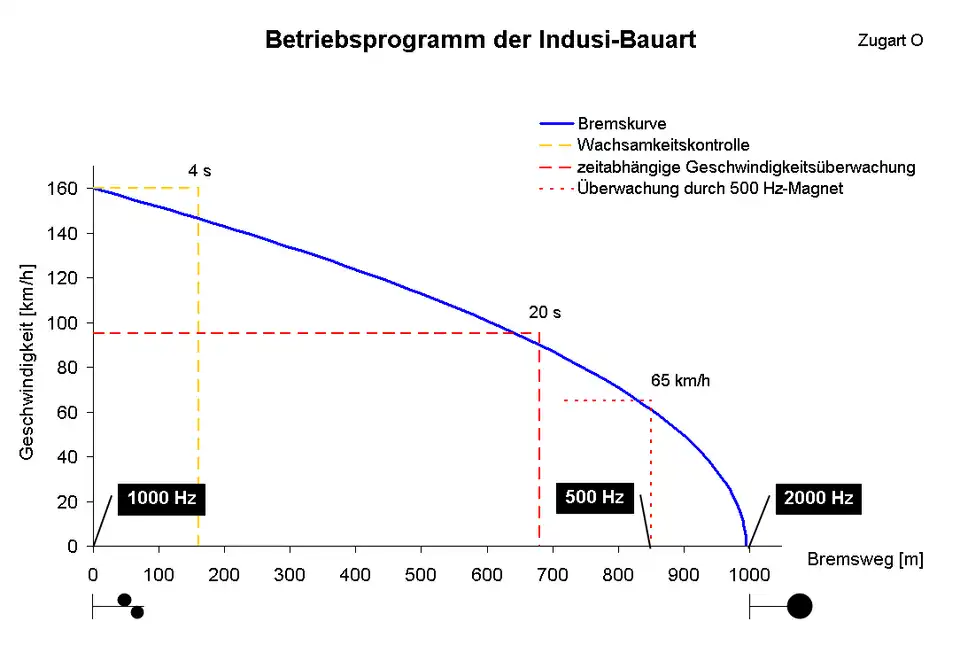 Eine weitere Anwendung der Indusi ist die Überwachung der zulässigen Geschwindigkeit vor einem Gefahrenpunkt auf der Strecke durch einen Geschwindigkeitsprüfabschnitt.[9]