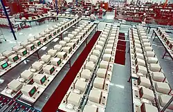 Das Statistische Bundesamt definierte 1979 die Industrie als sämtliche Institutionen, „deren wirtschaftliche Tätigkeit überwiegend darin besteht, Elektrizität, Gas, Fernwärme und Waren zu erzeugen oder zu gewinnen oder in verschiedener Weise zu be- oder verarbeiten, und zwar mit dem Ziel, andere Waren herzustellen“.[25] Der um 1980 aufgekommene Begriff der Finanzindustrie – die eigentlich dem Tertiärsektor angehört – macht deutlich, dass das Finanzwesen durch Standardisierungen (Commoditisierung) seine Produktdifferenzierung zugunsten relativ homogener Finanzprodukte aufgegeben und industrietypische Formen angenommen hat.