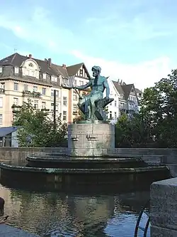 - ↑ Industriebrunnen, Bildhauer: Frédéric Coubillier (Figuren) (1869–1953), Architekt: Gotthold Nestler (Brunnenanlage) (1887-1957), Gießer: Lauchhammer AG, Bearbeitung, auf d:kult