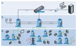 - Besitzen die eingesetzten Switches in der IIT-Ebene eine integrierte Routing-Funktionalität, entfällt die Notwendigkeit eines separaten Gerätes – die ohnehin benötigte Switch-Funktionalität kann hier mit der Aufgabe des Routers netzwerkspezifisch kombiniert werden.