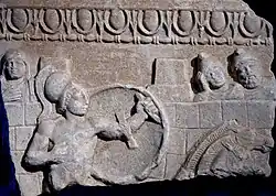 Nachdem Hektor besiegt worden ist, soll Patroklos am nächsten Tag bestattet werden. In der Nacht besucht seine Psyche[44] Achilleus, weissagt ihm seinen nahen Tod, bittet um ein gemeinsames Grab und eine baldige Bestattung für seinen Leichnam. Am nächsten Morgen wird Holz beschafft und Patroklos’ Scheiterhaufen neben Tier- und Menschenopfern durch die Winde Boreas und Zephyros entzündet. Achilleus verspricht ihm, Hektors Leiche den Hunden vorzuwerfen, die noch durch Aphrodite und Apollon vor Schleifspuren geschützt wird. Am nächsten Tag werden Patroklos’ Gebeine in einem Grabhügel bestattet. Um den Toten zu ehren, begeht man Wettspiele.[45] Im Wagenrennen treten Nestors Sohn Antilochos, Eumelos, Diomedes, Menelaos und Meriones an. Eumelos scheidet aus, Diomedes siegt, Antilochos erringt durch eine List den zweiten Platz vor Menelaos. Achilleus will Eumelos aufgrund des unverschuldeten Radbruchs den zweiten Preis gewähren. Da Antilochos auf diesen besteht, erhält Eumelos einen Sonderpreis. Menelaos erwähnt Antilochos’ List und verlangt von ihm den Schwur, nicht regelwidrig gehandelt zu haben.[46] Dieser gewährt ihm stattdessen den zweiten Preis, doch Menelaos ist versöhnt und schenkt ihm den zweiten Preis. Die übrigen Wettkämpfe sind Boxen (Sieg für Epeios), Ringen (Unentschieden zwischen dem großen Aias und Odysseus), Laufen (Odysseus siegt), Speerstechen (unentschieden), Diskuswerfen (hier siegt Polypoites), Bogenschießen (Meriones gewinnt den Wettstreit) und Speerwerfen (hier wird Agamemnon der erste Preis zugesprochen).