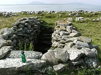 - Reste dreier Bienenkorbhütten, die größte wird „Saint Brendan’s cell“ (deutsch „Saint Brendans Zelle“) genannt.