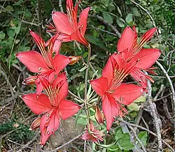 - Verschiedenfarbige Inkalilie (Alstroemeria versicolor Ruiz & Pav., Syn. Alstroemeria tigrina Phil.): Sie kommt im zentralen Chile vor.[4]