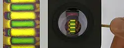 Bei der photoelektrischen Abtastung unterscheidet man zwischen dem abbildenden Messprinzip, das für Teilungsperioden bis hinunter zu 2 µm geeignet ist, und dem interferentiellen Messprinzip, das sub-µm Teilungsperioden ermöglicht.[2]