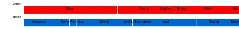 Das Erbe der beiden ersten Vorstände des Vereins bzw. des Instituts, Carl Sittler und Max Heuwieser, traten Emil Brichta im Jahr 1963 und Anton Mayer-Pfannholz bereits 1944 an; ihnen wiederum folgten bis heute mehrere andere Vorstände, wie auch die Grafik anschaulich darstellt. Es waren dies: