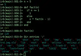 Interactive Ruby Shell (IRB) ist ein Kommandozeileninterpreter (REPL) für die Programmiersprache Ruby.