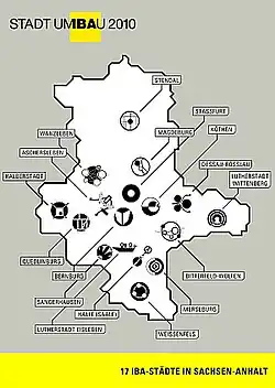 Mit der Internationalen Bauausstellung Stadtumbau Sachsen-Anhalt 2010 (2003–2010) versuchen 19 sachsen-anhaltische Städte in Zusammenarbeit mit der Bauhausstiftung Dessau und der Landesentwicklungsgesellschaft SALEG unter dem Leitthema „Neue Perspektiven für Städte im Umbruch“ dauerhaft eine leistungsfähige aber günstige Infrastruktur in den Teilnehmerkommunen zu verwirklichen, die vor allem unter Arbeitslosigkeit, Suburbanisierung und dem Demographischen Wandel leiden, meist aber auch ein bedeutendes kulturelles Erbe vorweisen können. Die IBA beschäftigt Stadtplaner, Architekten und Kommunalpolitiker gleichermaßen wie die Bewohner in den Städten. Jede der 19 Teilnehmerstädte behandelt für den Stadtumbau ein individuelles und zukunftsfähiges Thema mit international vermarktungsfähigen Lösungskonzepten für Städte mit ähnlichen Problemen. Alle IBA-Kommunen sollen gesunden und attraktiver für ihre Bewohner werden und wieder ihre regionale Besonderheit ausstrahlen. Die IBA Sachsen-Anhalt 2010 ist die erste ihrer Art, deren Versuchsfeld ein gesamtes Flächenland ist.
