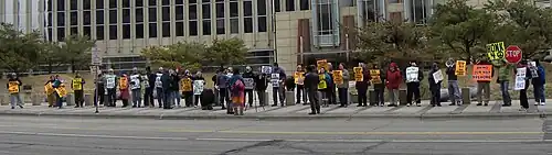 Im September 2011 würdigte Präsident Obama die Proteste der libyschen Bevölkerung und pries die wirksame Koalition von Arabischer Liga und NATO.[96]
