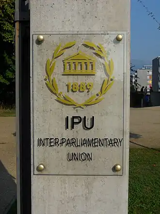 Die Interparlamentarische Union (IPU, gegründet als „Interparlamentarische Union für internationale Schiedsgerichtsbarkeit“, frz.: Union interparlementaire, kurz UIP) ist eine 1889 gegründete internationale Vereinigung von Parlamenten, mit dem Ziel der Sicherung des Friedens, der Förderung des Demokratieverständnisses in allen Teilen der Welt und der Wahrung der Menschenrechte. Sie wurde von William Randal Cremer aus Großbritannien und Frédéric Passy aus Frankreich ins Leben gerufen. Im Jahr 2023 hat die IPU 180 Mitgliedsstaaten und 15 assoziierte Mitglieder.[2] Der Sitz des Sekretariats ist seit 1921 in Genf. Finanziert wird die Union ausschließlich durch die Beiträge der Mitgliedsparlamente.