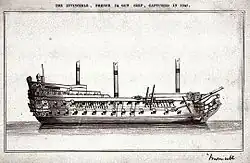 - ↑ Die französische Einteilung in Rangklassen wich von der britischen ab. Zum Zeitpunkt der Indienststellung der Invincible waren französische Schiffe Zweiten Ranges Zweidecker mit 74 Kanonen.