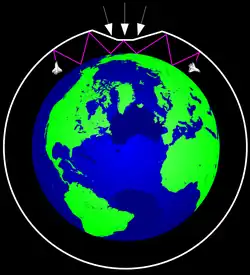 Bodenwelle und eine an der Ionosphäre reflektierte Raumwelle (mit Multi-Hop)