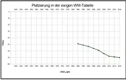 | Beste Platzierungen in den Austragungsländern der FIFA-Fußballweltmeisterschaften | |