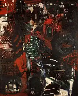 1969 malte sie das „letzte Bild“ (1969/1989). Es zeigt eine gemalte gelochte Metallplatte, auf der sich wie mit elektronischer Kraft getriebene und emotionale Impulse austoben. In der rechten Ecke entdeckt man einen collageartig angebrachten Abflussstopfen mit Kette, ein Fundstück, das ebenso unwirklich, wie das irgendwo zwischen Weltall und Erde erscheinende Motiv, die gesamte utopische spielerisch-futuristische Darstellung profan ironisiert. Sie verwirklicht sich spielerisch, eigenwillig, manchmal kurios, aber auch visionär auf der Leinwand.