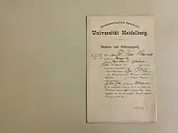 - ↑ vgl. auch Matrikelbuch der Universität Heidelberg 1895-1906 abgerufen am 6. Mai 2020., mit Eintrag für 1900