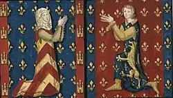 - Heinrich IV. Bolingbroke König von England (1399–1413) ⚭ I. 1380 Lady Mary de Bohun († 1394), Tochter des Humphrey de Bohun, 7. Earl of Hereford; ⚭ II. 1403 Johanna von Navarra (* um 1340; † 1437), eine Tochter von Karl II. König von Navarra (1349–1387) aus dem Haus Frankreich-Évreux.[24]