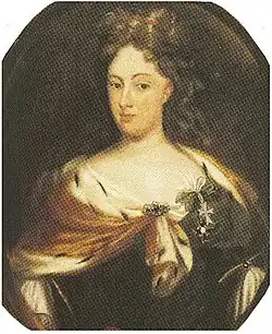 - ↑ Das Ehepaar hatte insgesamt neun Kinder, davon sieben Mädchen: Wilhelm Georg Friso (*1685, † 1686), Erbprinz von Nassau-Dietz; Henriette Albertine (*1686, † 1754), Prinzessin von Nassau-Dietz; Johann Wilhelm Friso (*1687, † 1711), Statthalter in Friesland und Groningen; Marie Amalie (*1689, † 1771), Prinzessin von Nassau-Dietz, Kanonissin in Herford; Sophie Hedwig (*1690, † 1734) ⚭ 1708 Herzog Karl Leopold von Mecklenburg (*1678, † 1747); Isabella Charlotte (*1692, † 1757) ⚭ 1725 Fürst Christian von Nassau-Dillenburg (*1688, † 1739); Johanna Agnes (*1693, † 1765), Prinzessin von Nassau-Dietz; Louise Leopoldina (1695–1758), Prinzessin von Nassau-Dietz; Henriette Casimira (1696–1738), Prinzessin von Nassau-Dietz