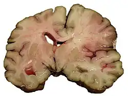 Reicht der zerebrale Blutfluss zur Versorgung des Hirngewebes nicht aus, kann es zum ischämischen Schlaganfall kommen. Dies kann wie im Abschnitt Thrombosen beschrieben durch eine lokale Engstelle der Fall sein oder bei systemischen Störungen des Blutflusses, wie einer schweren Hypotonie beispielsweise nach einem Herzinfarkt, bei dem die Auswurfleistung des Herzens vermindert sein kann.[3]