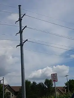 Freileitungen mit Isoliertraversen erfordern geringere Masthöhen und vor allem erheblich geringere überspannte Flächen und Trassenbreiten.[2] Somit wird der Bau sehr kompakter Leitungen möglich.