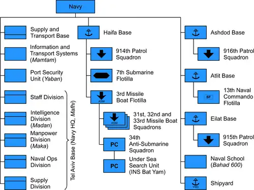 - ↑ Israeli Navy: Navy Commanders-in-Chief. In: JewishVirtualLibrary.org. Abgerufen am 15. Februar 2019 (englisch).