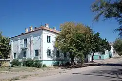 Die weiter nach Norden ansteigende Hauptstraße und zwei bis drei parallele Nebenstraßen mit hohen, Schatten spendenden Alleebäumen erschließen auf etwa 1,5 Kilometern Länge das zentrale Stadtgebiet. Dieses ist durch die für Tadschikistan ungewöhnlichen Einfamilien- und Reihenhäuser der deutschen Siedler charakterisiert. Die Häuser besitzen Walmdächer mit Dachgauben und mehreren hohen Kaminen für Einzelöfen sowie große Sprossenfenster. Bei manchen ist eine Veranda oder eine Arkade mit Rundbögen vorgebaut. Holzzäune entlang der Gehwege begrenzen kleine Vorgärten, in denen Obstbäume gedeihen. Die beiden Geschosse sind durch abgestufte Gesimse getrennt und sorgen für eine horizontale Fassadengliederung. Einige Häuser stehen leer, überwiegend sind sie, besonders an den mit grauen Faserzementplatten gedeckten Dächern in einem vernachlässigten Zustand.