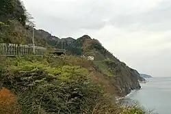 - Oyashirazu (親知らず, dt. „Weisheitszahn“, eigentlich wörtlich „den Eltern unbekannt“ – nach der Annahme, dass diese Zähne erst auftreten, wenn die Kinder aus dem Elternhaus bereits ausgezogen sind). Der Geröllstrand vor Oyashirazu war eine berühmte Fundstätte für Jadeitkiesel, die aus dem Renge-Gürtel ausgewaschen wurden. Mittlerweile ist der Strand allerdings größtenteils durch lokale Jadesucher und Touristen abgesucht wurden, so dass kaum noch gute Stücke gefunden werden.