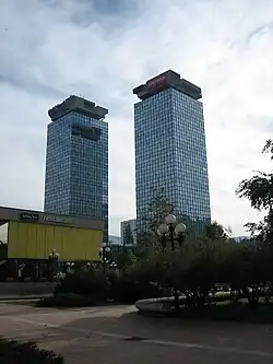- ↑ UNIS-Türme ( des vom 13. Juni 2020 im Internet Archive) Info: Der Archivlink wurde automatisch eingesetzt und noch nicht geprüft. Bitte prüfe Original- und Archivlink gemäß Anleitung und entferne dann diesen Hinweis. auf IUS.EDU.ba (abgerufen am 18. Juni 2011)