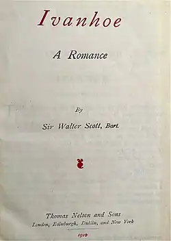 - Walter Scott: Ivanhoe. A Romance, London, Edinburgh, Dublin and New York: Thomas Nelson and Sons 1910